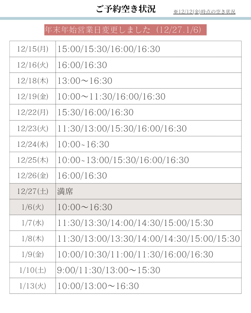 ご予約空き状況はInstagram、Threads随時更新しておりますので、そちらをチェックしてください☟